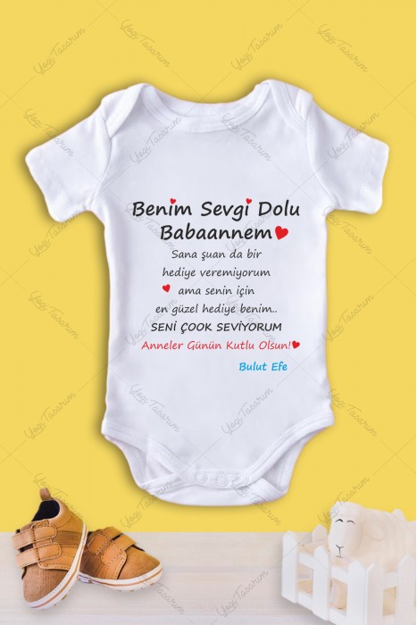 Benim Sevgi Dolu Anneannem Yazılı Anneler Gününe Özel Bebek Zıbını