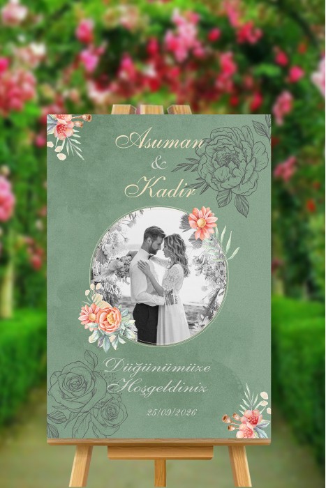 Kristal Kalpli Resimli Düğün Karşılama Panosu