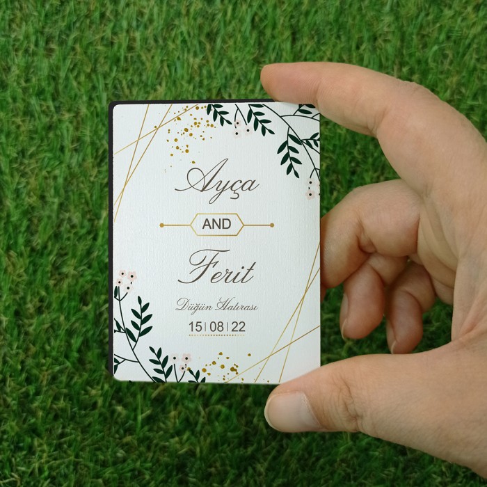 Yaprak Temalı Nikah Hatırası Ahşap Magnet