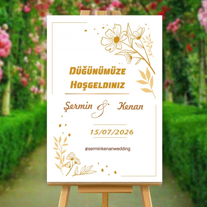 Düğünümüze Hoşgeldiniz Yazılı Gold Çiçek Temalı Karşılama Panosu Üzerindeki Değerlendirmeler