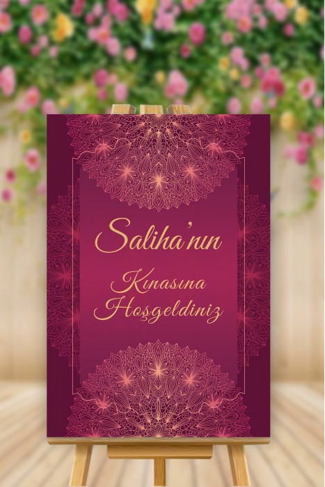 Kınamıza Hoş Geldiniz Çift İsimli Mor Karşılama Panosu