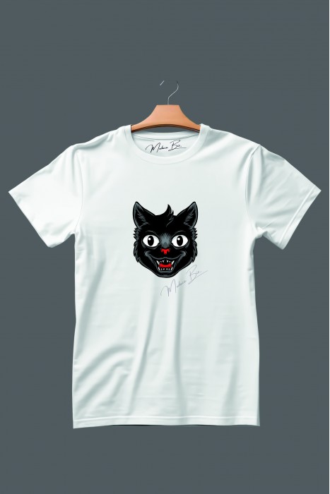 Gülen Siyah Kedi Kafa Görsel Baskılı Unisex Beyaz Tişört Üzerindeki Değerlendirmeler