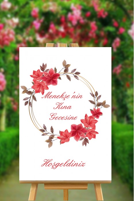 Nikahımıza Hoş Geldiniz Kırmızı Papatya Karşılama Panosu