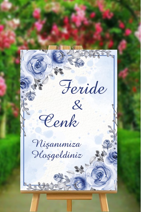 Yeşil Zeytin Yapraklı İsme Özel Nişan Karşılama Panosu