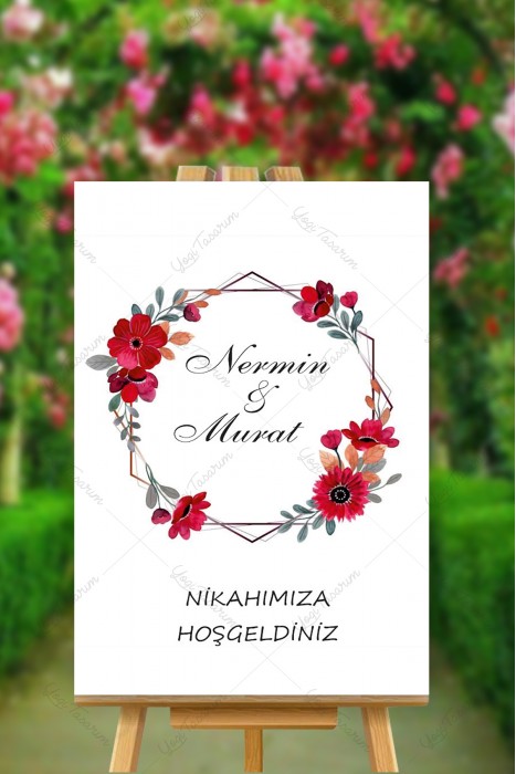 Nikahımıza Hoş Geldiniz Kırmızı Papatya Karşılama Panosu Üzerindeki Değerlendirmeler