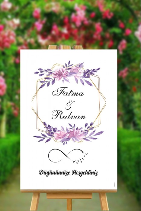 Güllü Yapraklı İsme Özel Nikahımıza Hoşgeldiniz Temalı Karşılama Panosu
