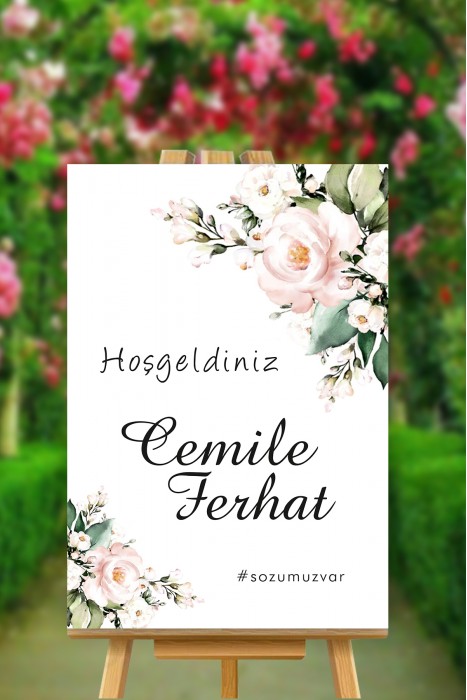 Nikahımıza Hoşgeldiniz Temalı Çiçekli Karşılama Panosu