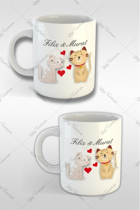 Sevgili Çift Kediler İsme Özel Kupa Bardak Baskı