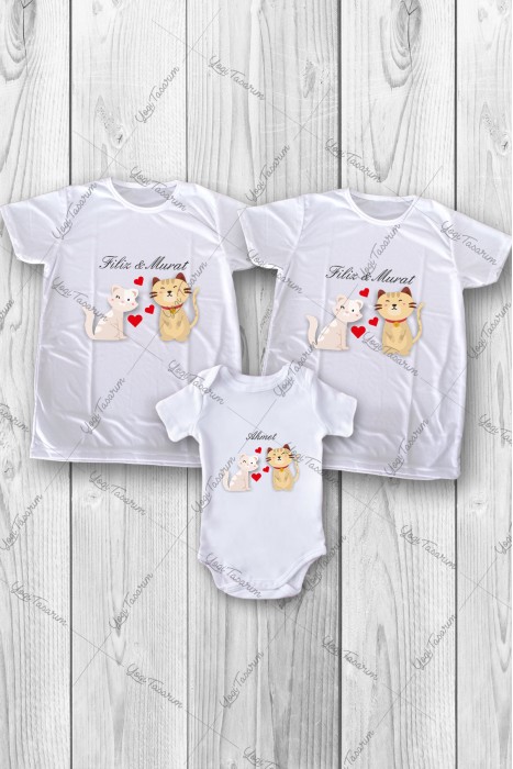 Sevgili Kediler Çift İsimli 3lü Aile Kombin Zıbın ve Tişört Baskı Üzerindeki Değerlendirmeler