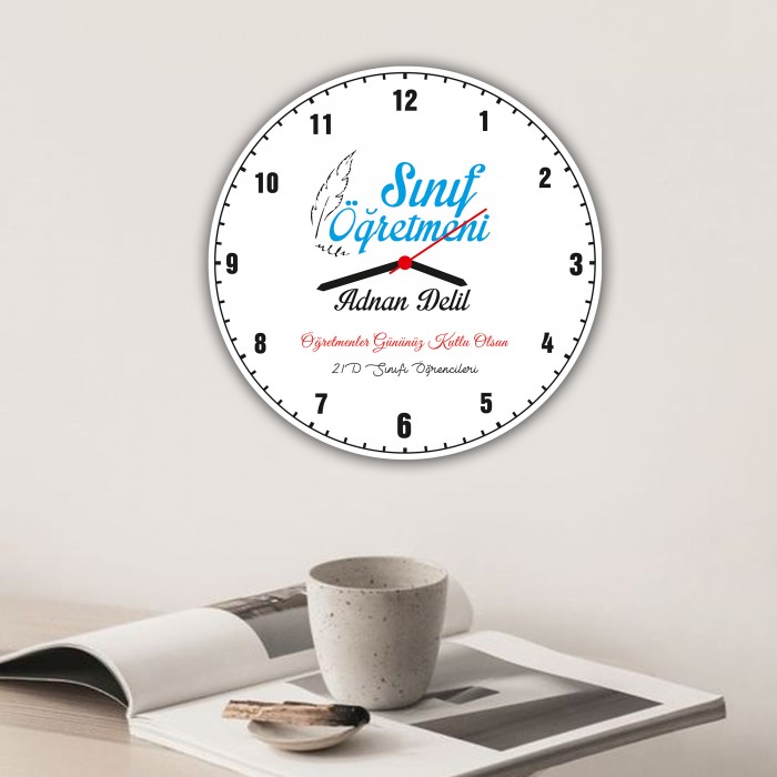 Sınıf Öğretmeni Pembe İsme Özel Duvar Saati