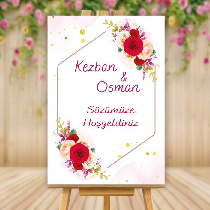 Nikahımıza Hoşgeldiniz Temalı Çiçekli Karşılama Panosu