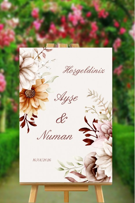 Düğünümüze Hoşgeldiniz Yazılı Çiçek Çemberi Temalı Karşılama Panosu