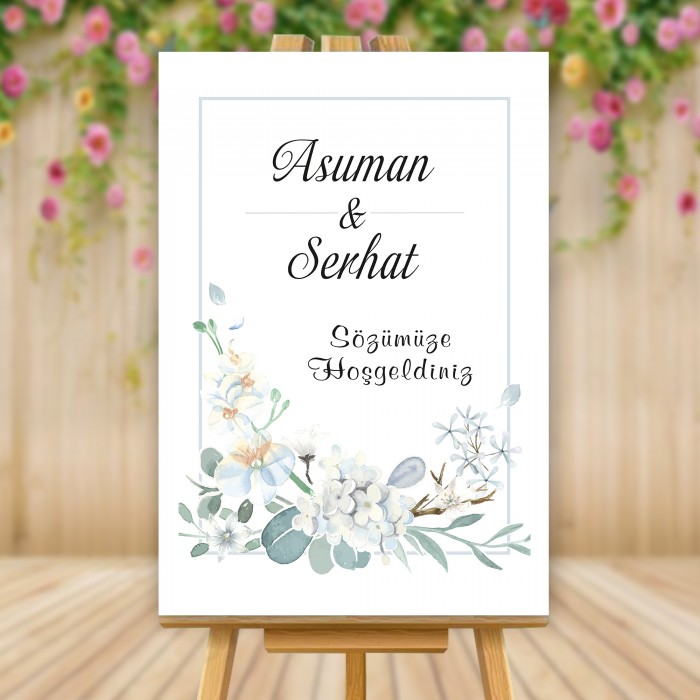 Mavi Çiçek Temalı Nişan Karşılama Panosu