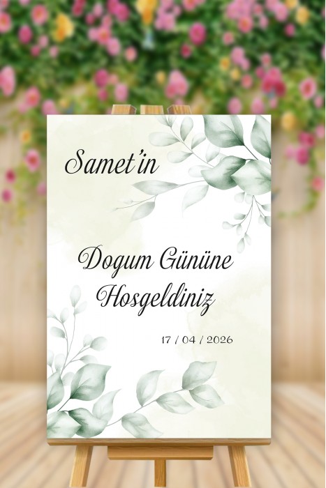 Yeşil Yapraklı Doğum Gününe Hoşgeldiniz Temalı Karşılama Panosu Üzerindeki Değerlendirmeler