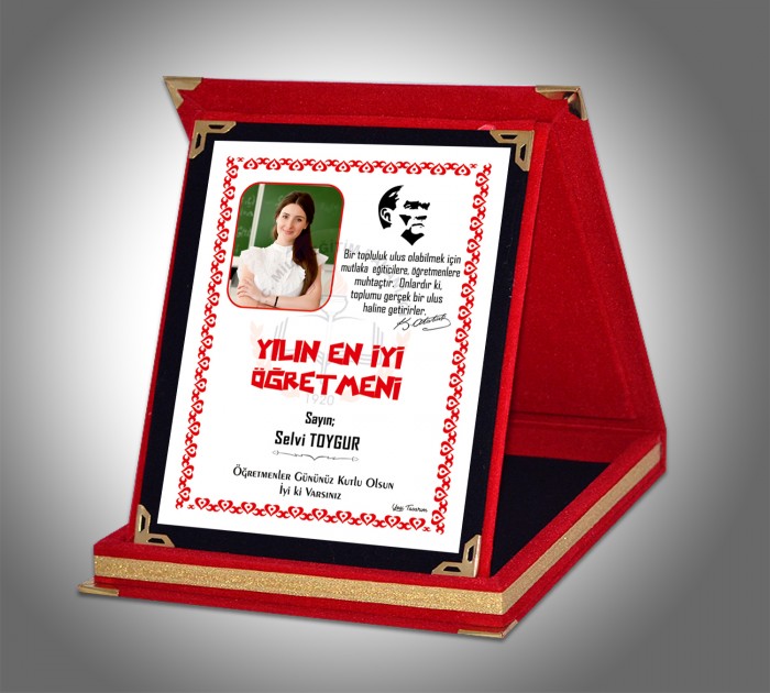 Etiketler: Yılın En İyi Öğretmeni, Resimli, Kadife Plaket, Atatürk, Baskılı, plaket, ahşap, öğretmenler günü